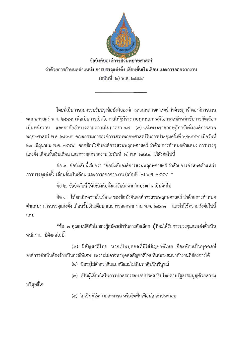 (สามารถ Download ได้) 1. ข้อบังคับองค์การสวนพฤกษศาสตร์ ว่าด้วยการกำหนดตำแหน่ง การบรรจุแต่งตั้ง เลื่อนขั้นเงินเดือน และการออกงาน (ฉบับที่ ๒) พ.ศ. ๒๕๕๔.PDF |