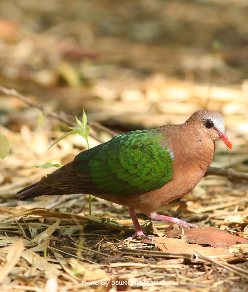 มักพบอยู่โดดเดี่ยว เดินหากินเมล็ดพืช แมลง หรือผลไม้ที่ตกอยู่ตามพื้นถนน หรือทางเดินในป่า เมื่อตกใจจะบินหนีด้วยความรวดเร็ว เห็นสะโพกสีขาวและสีเขียวมรกตของปีก มีเสียงร้องทุ่มต่ำ