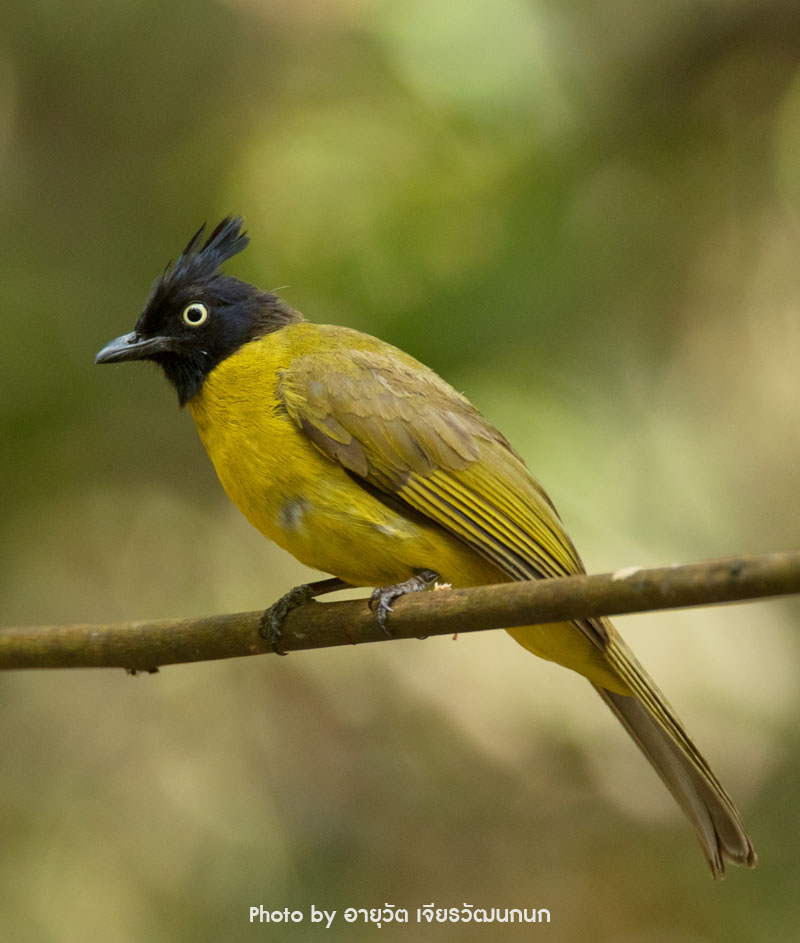 นกขนาดเล็ก หัวสีดำมีหงอนตั้งขึ้น ตาสีขาว ทั่วตัวมีขนสีเหลืองลำตัวด้านบนมีสีเข้มกว่าด้านล่าง
