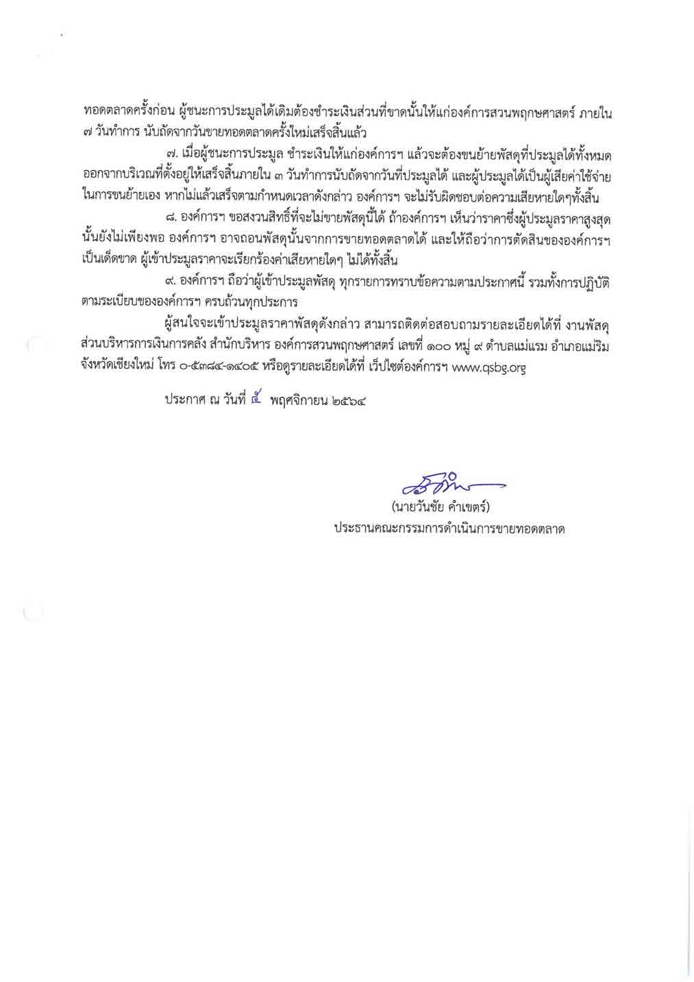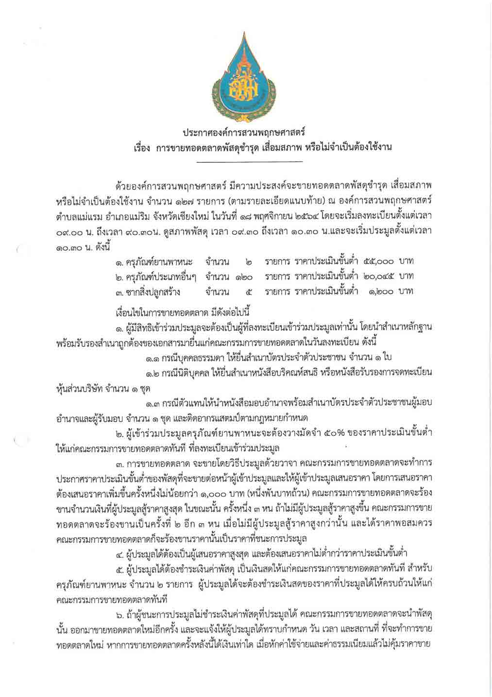 องค์การสวนพฤกษศาสตร์ ประกาศขายทอดตลาดพัสดุชำรุด เสื่อมสภาพ หรือไม่จำเป็นต้องใช้งาน
